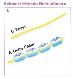 Nach der Gate-control-Theorie ist die Bandbreite der Informationsübermittlung im Rückenmark begrenzt. Wenn die schnellen A Fasern Impulse senden blockieren sie die langsamen C Fasern. Das ist evolutionär sinnvoll, da die Informationen der A Fasern wichtiger Informationen leiten und uns vor akuter Verletzung schützen.