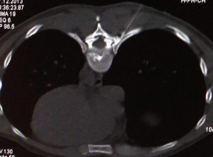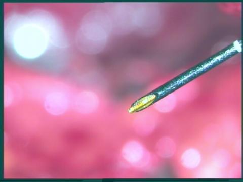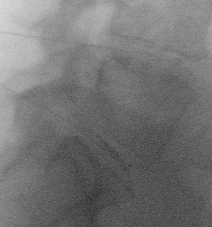 With the help of an X-ray the surgeon inserts a thin needle into the intervertebral disk. Due to the administration of analgetics the entire intervention is nearly pain free. By the help of the needle the surgeon can then insert a glass fiber which carries a laser. The slipped disk can then be vaporized by a laser.