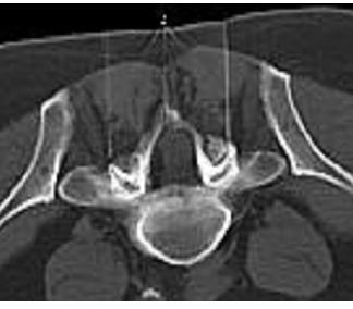 We try to block the lower lumbal and sacral nerve roots which can be irritated after an slipped disk or a stenosis. The pain and the swelling need to be reduced. Empirically we have a succeed rate of 60- 70%. It is necessary to perform 6- 12 injections in alternating periods.